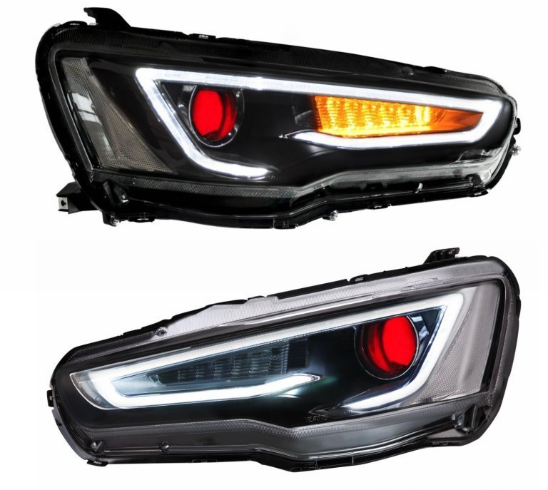 optika-perednya-fari-na-mitsubisi-lanser-10-z-chervonoyu-linzoyu